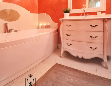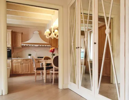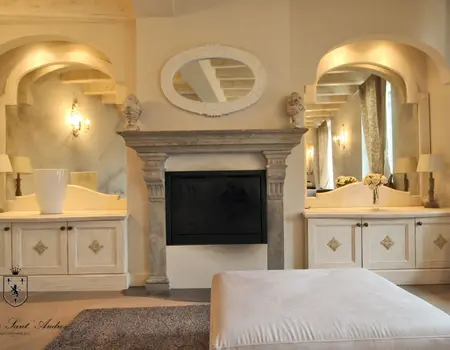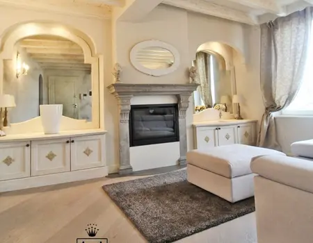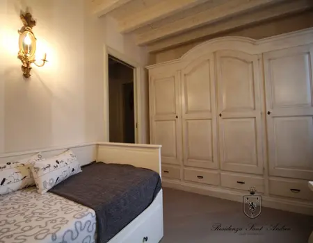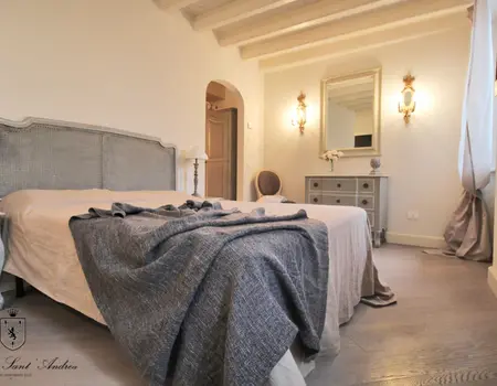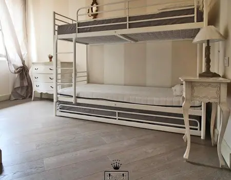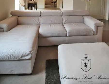 Es ist die größte Wohnung der Residenz, ideal für Unterkunft mit Kindern, oder für diejenigen, die zwei Bäder und drei separate Schlafzimmer im gleichen Haus haben müssen. Zusätzlich zu einem sehr großen Balkon mit einem schönen Blick auf den See, die Wohnung ist eingerichtet mit handgefertigten Möbeln von lokalen Handwerkern. Der Kamin im Wohnzimmer bereichert den Raum, was eine sehr raffinierte Note, immer in der Provence-Taste. Die wirklich einzigartigen Details dieser Wohnung wird Ihren Aufenthalt im Residence Sant’Andrea auf jeden Fall unvergesslich.