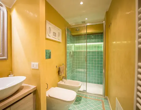 The apartment is composed as follow : living room with sofa bed, cooking zone complete of every appliance (plate induction, refrigerator, oven, washing machine) external portico, bath of service, single room, double room and main bath. Furnished with fine materials, Sardinian ceramics for the baths, furniture and kitchen rigorously handmade by skilled artisans of the zone, everything to make your stay unforgettable.